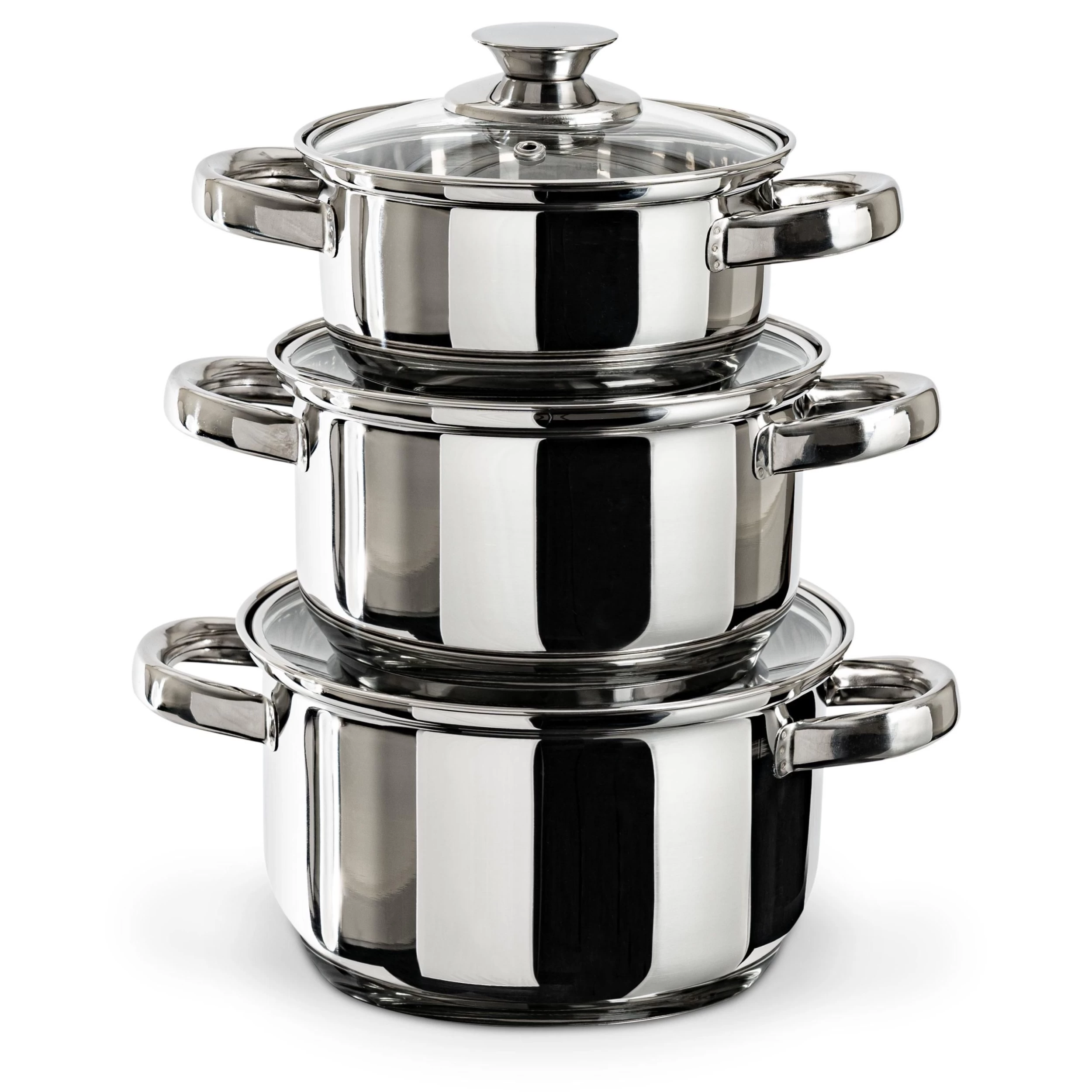 De Bardani Peter Pan pannenset bestaat uit zes delen. Deze pannenset van Bardani bestaat uit drie pannen met 3 bijbehorende glazen deksels. De 14 centimeter kookpan heeft een inhoud van 750 ml, de 16 centimeter kookpan een inhoud van 1,5 liter en de 18 centimeter kookpan een inhoud van 2 liter. Deze pannen kunnen gebruikt worden op gas, elektrisch, keramisch en inductie.