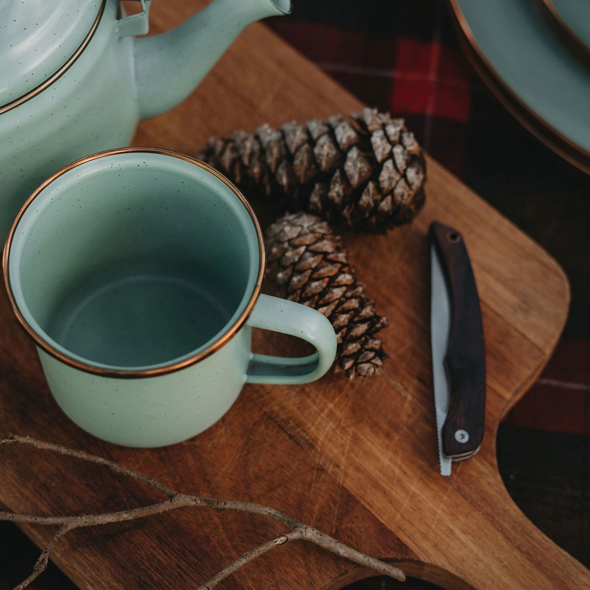 De Barebones Emaille mokken zijn per 2 stuks verpakt. De stalen mokken zijn 3x geëmailleerd en zijn afgewerkt met een bijzonder stijlvolle bronskleurige rand. De mokken zijn thuis en onderweg te gebruiken en aan te vullen met een compleet servies.