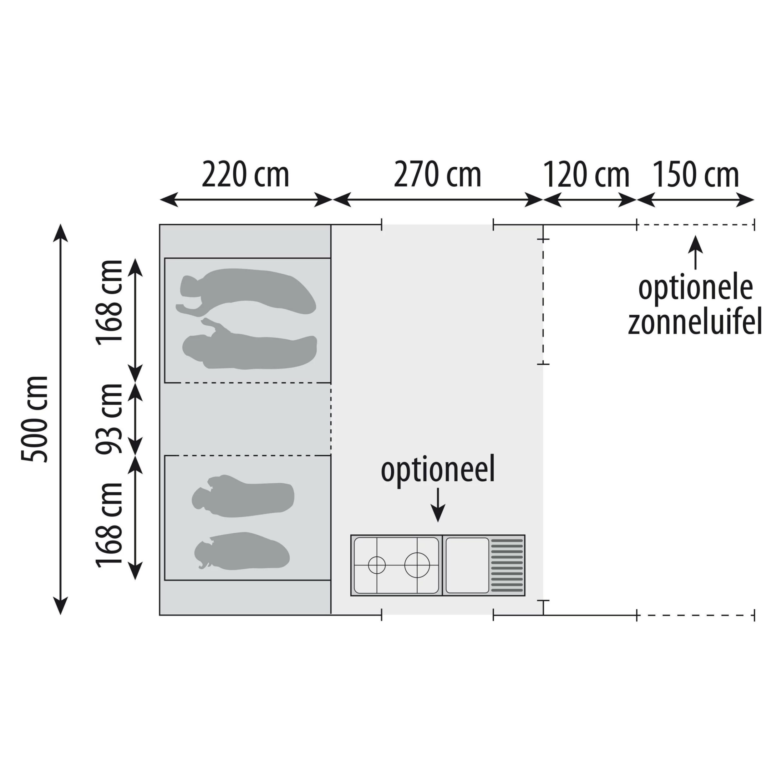 | Afmetingen voortent b x d in cm | 500 x 270 cm |