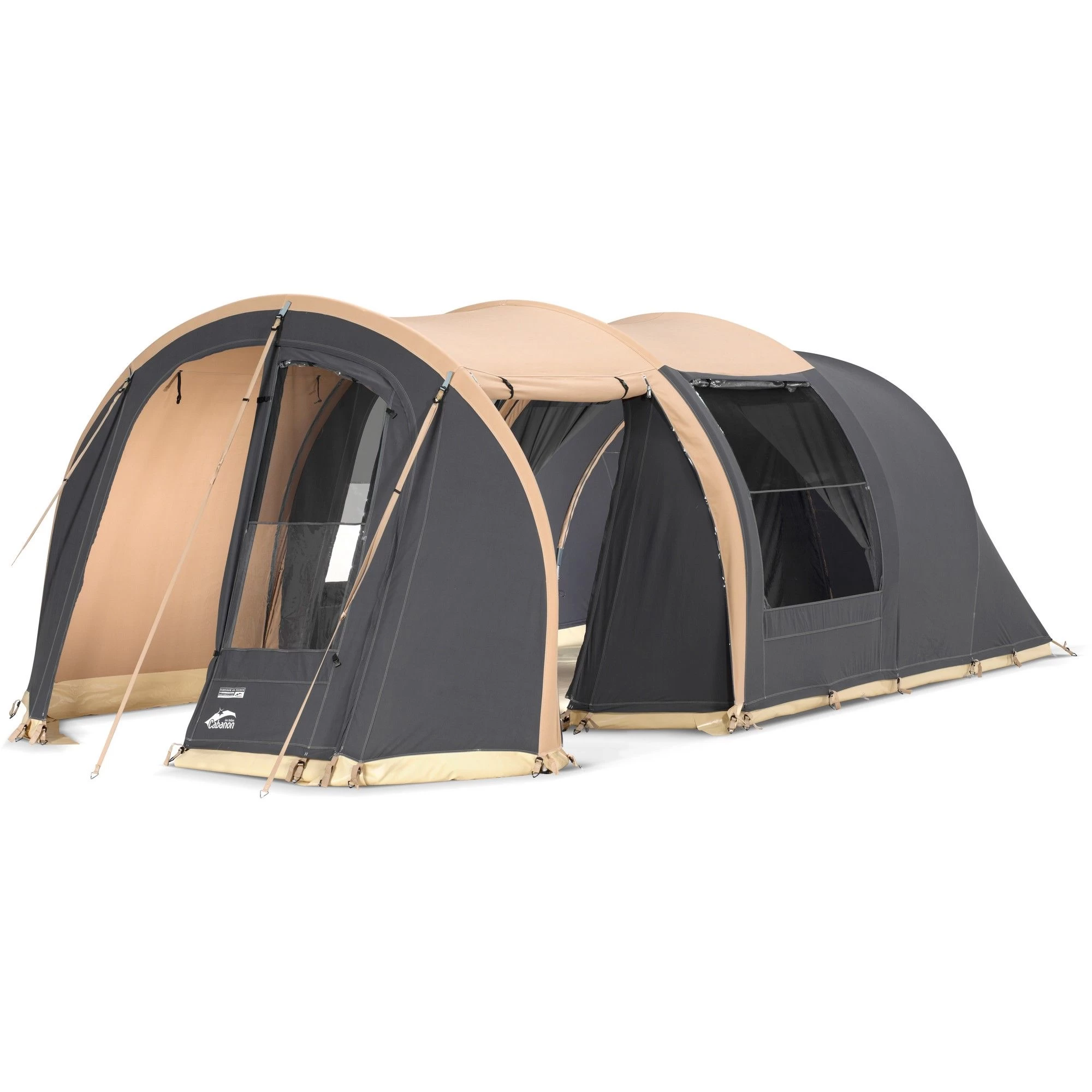 De Cabanon Morea 300 Vario tent is een luxe tunneltent die gemaakt is van een zwaar tentdoek van katoen. Deze Cabanon tent is zeer stormvast en ventileert goed dankzij de grote ramen. De leefruimte is ruim en de tent is voorzien van twee slaapcabines.