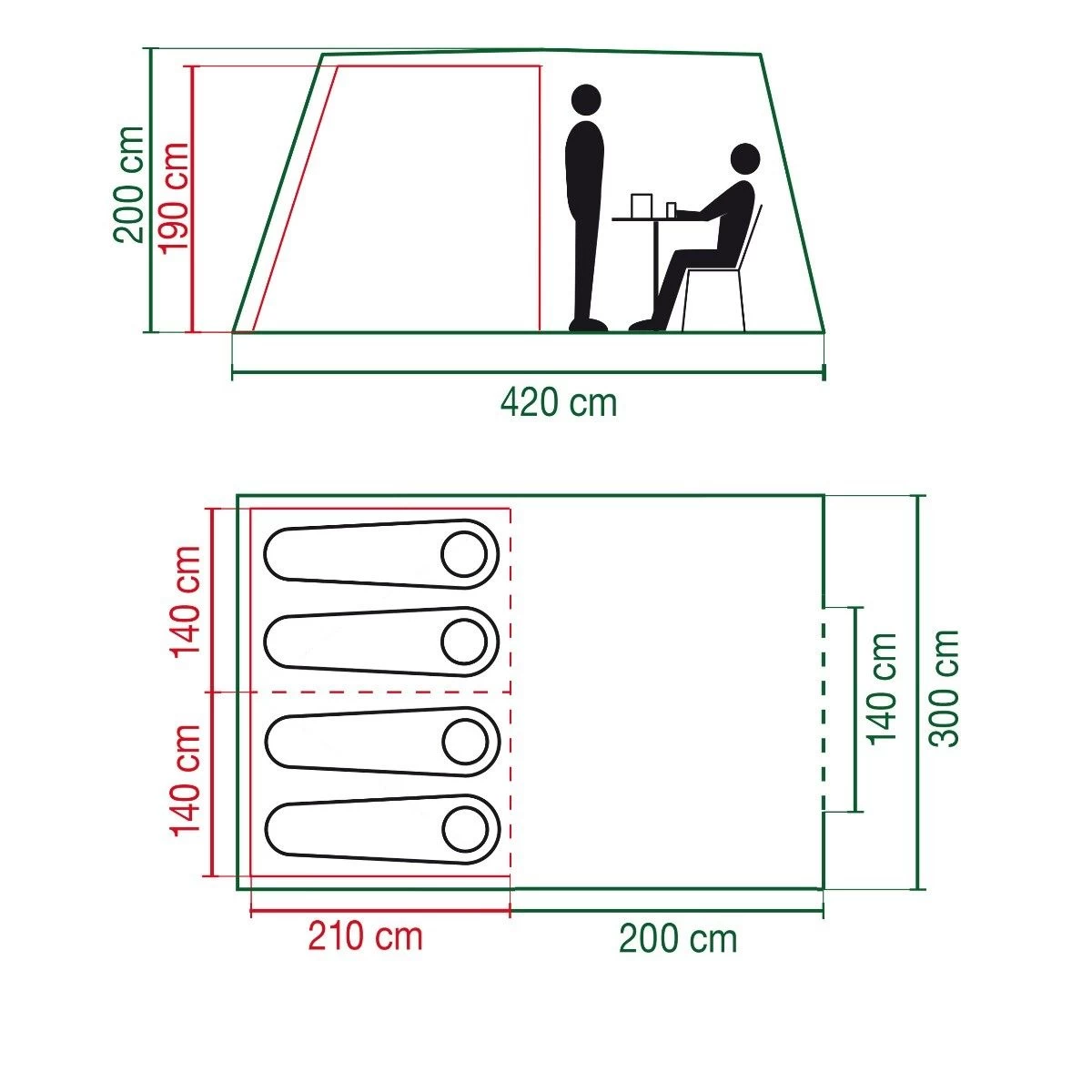 Het voorste deel van de tent dient als leefruimte. Het achterste gedeelte dient als slaapruimte die eenvoudig op te delen is in twee ruimtes door een uitneembare scheidingswand. Dankzij deze flexibiliteit en de uitstekend ventilatie van het tentdoek van de binnentent is maximaal comfort in de tent verzekerd.