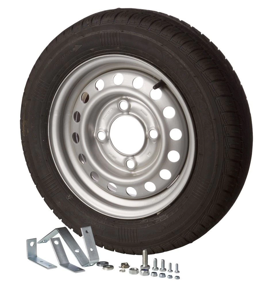 Het Erdé Daxara 158 reservewiel met beugel is te gebruiken op een Erdé Daxara bagagewagen. Door de handige beugel kan het 13 inch reservewiel aan de zijkant van de aanhangwagen gemonteerd worden. Zo hebt u altijd een reservewiel bij de hand, zonder dat het u laadruimte kost.