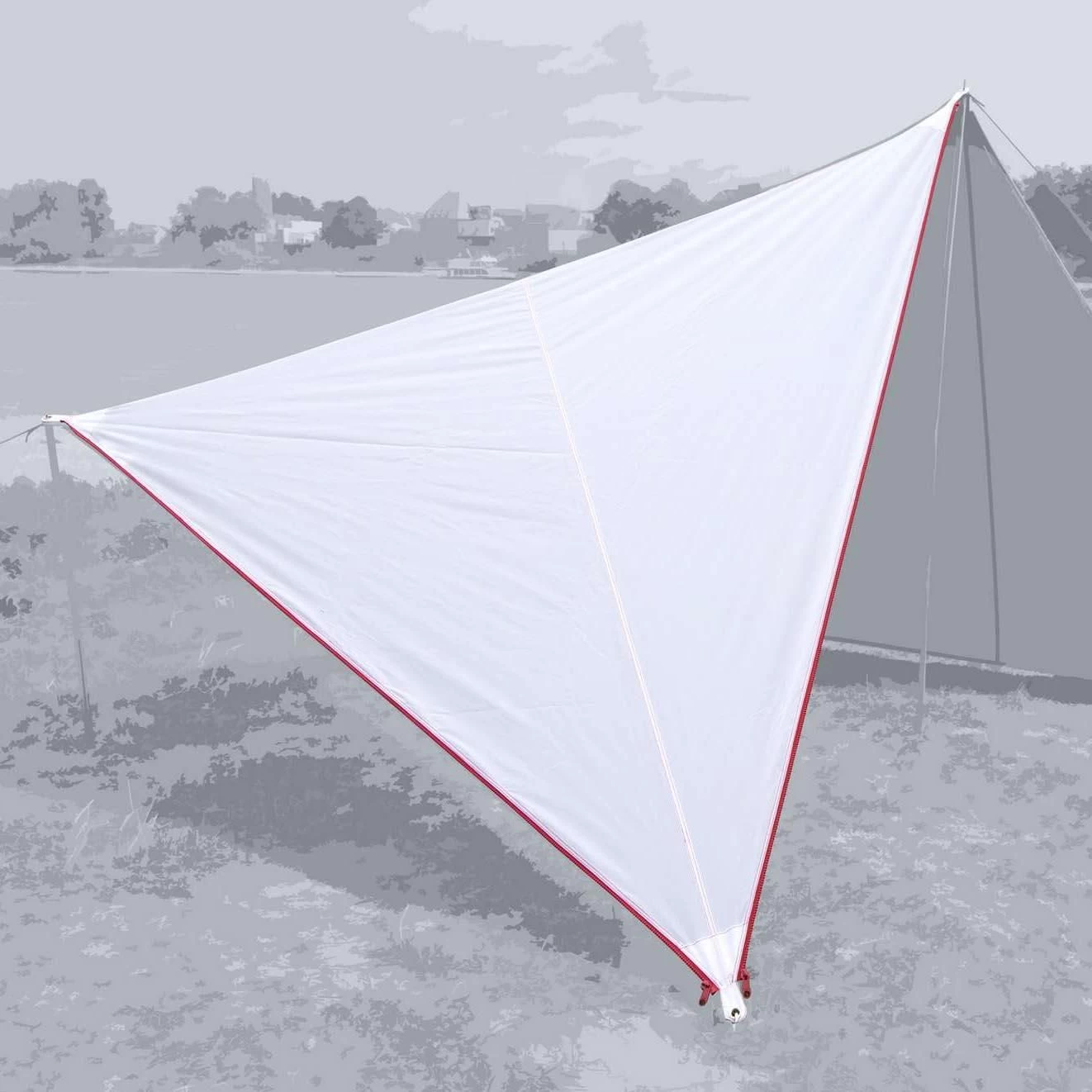 De Bent Canvas Plain Set tarp 250 x 250 x 250 white red is een mooi wit doek met rode ritsen waarmee u bescherming zult hebben tegen zowel de zon als de wind. De Bent tarp heeft aan alle drie de zijden een hoogwaardige rits waardoor deze te combineren is met andere producten. Naast ritsen heeft de tarp in elke hoek een oog waarmee u het product stevig kunt bevestigen. Het doek is gemaakt van 150D polyester met een speciale UV60 coating. Het doek is voorzien van een 1500 mm waterkolom en is daarmee waterafstotend.