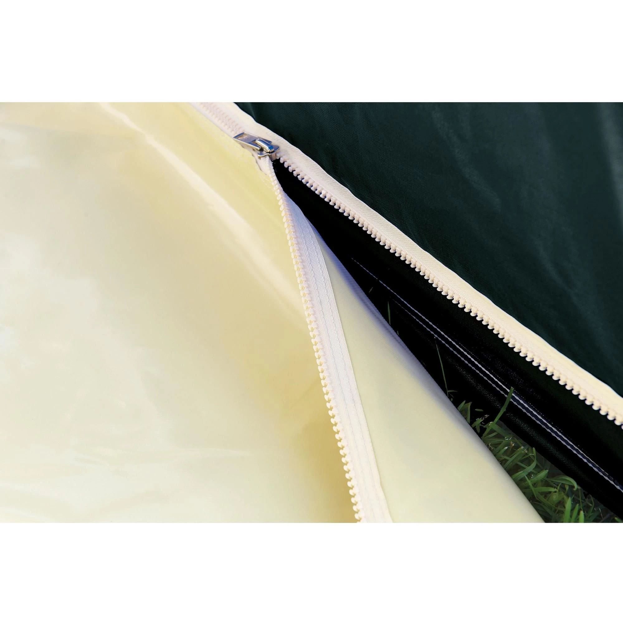De voortent van de Jamet Air is maar liefst 520 x 320 centimeter groot! Lekker ruim en goed geventileerd. De beide zijwanden van de voortent hebben kleine toegangsdeurtjes met rits voor het aansluiten van de luchtpomp op de luchtslangen en voor bijvoorbeeld kabeldoorvoer.