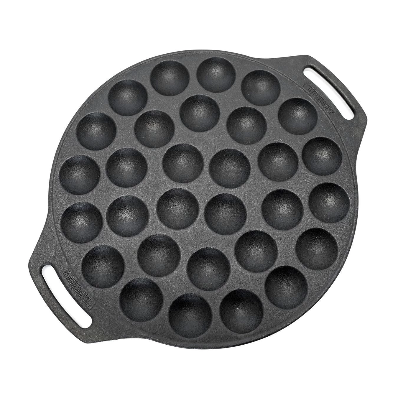 Met deze Petromax poffertjespan bakt u in één keer genoeg voor de hele familie! De pan heeft extra brede handvaten en is ook handig voor het bereiden van andere lekkere kleine gerechtjes.