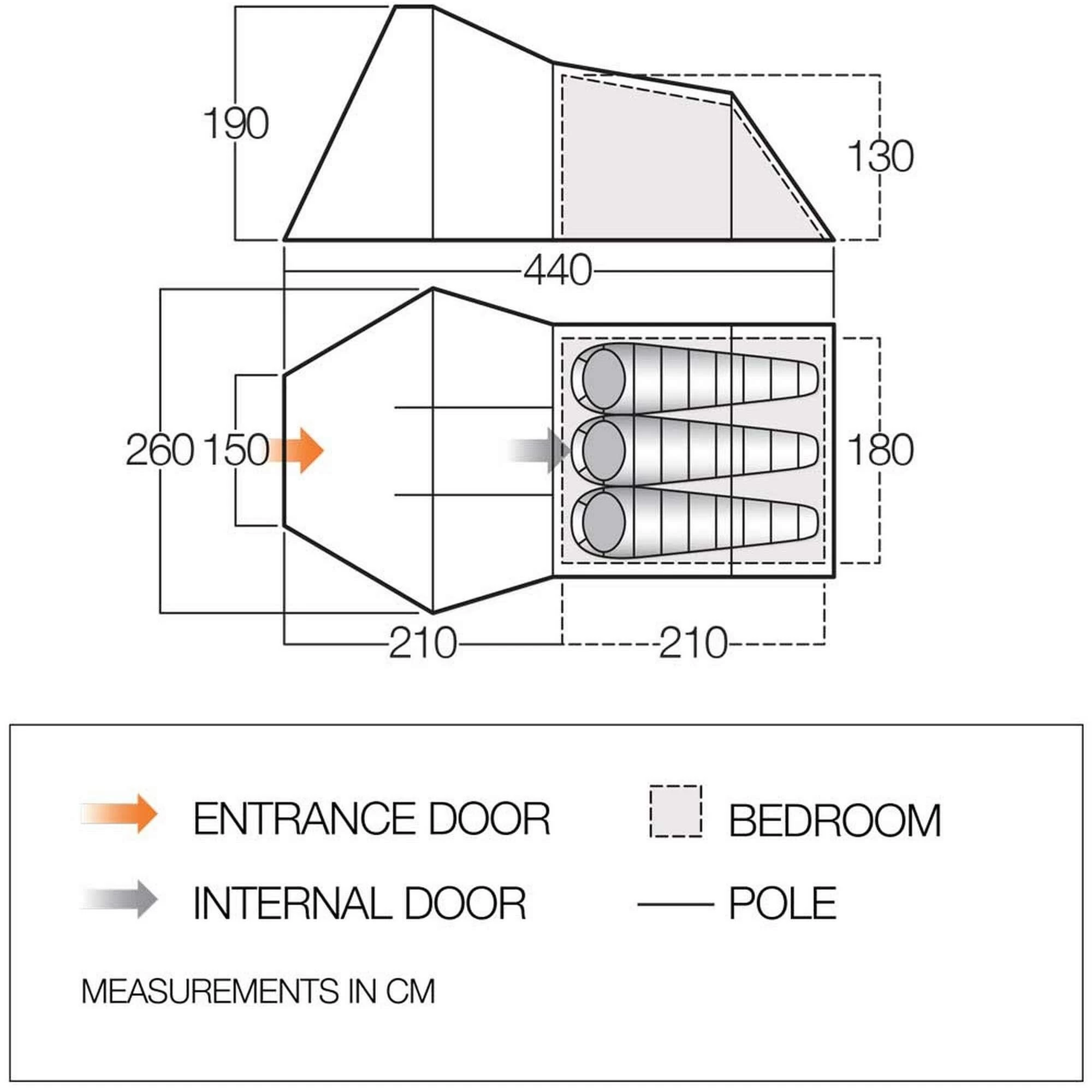 De Vango Galaxy 300 lichtgewicht tunneltent heeft een aan te haken verhoogd grondzeil, voor een droge en schone opbergplek voor schoenen en andere spullen. De O-vorm binnendeuren zijn gemakkelijk met één hand te openen en hebben gedeeltelijk horrengaas. Hierdoor worden insecten geweerd maar kan toch geventileerd worden.. De heldere ramen zorgen ervoor dat er veel lichtinval is en goed zicht. Meerdere reflectiepunten en reflecterende scheerlijnen zorgen ervoor dat de tent zichtbaar is in het donker en wordt struikelen tegen gegaan. Binnenzakken zorgen ervoor dat spullen opgeborgen kunnen worden in de binnentent. De tentstokken zijn voorzien van een kleurcodering waardoor de tent makkelijk op te zetten is. Het Tension Band systeem zorgt ervoor dat de tent blijft staan bij harde wind en voldoet aan de Europese standaard EN5912. De tent is gemakkelijk op te bergen in de tentzak.
